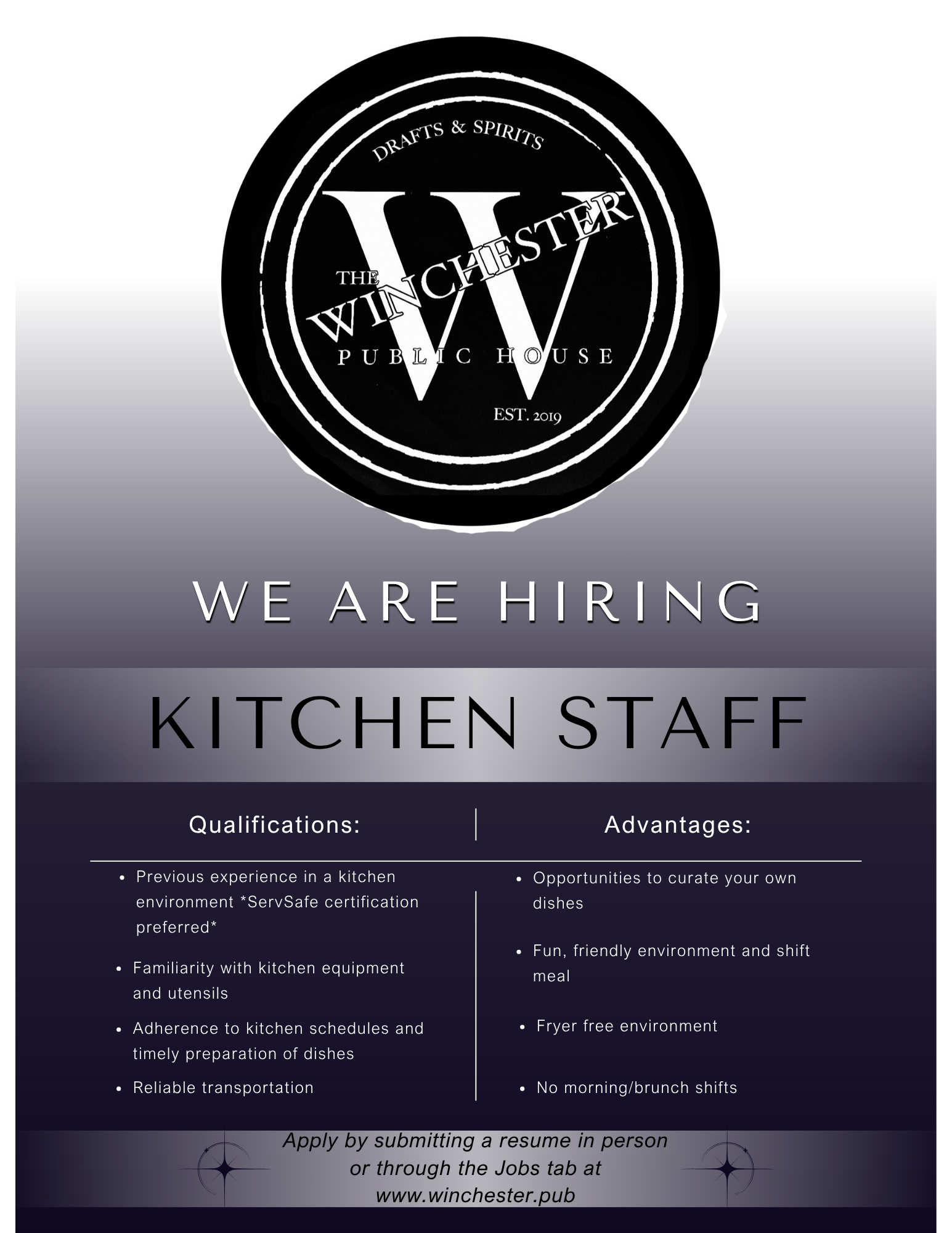 The flavors of Winchester are designed as shared plates. Our menu features hearty pub classics and guest favorites, crafted to be easily shared while sipping your way through the cocktail menu .